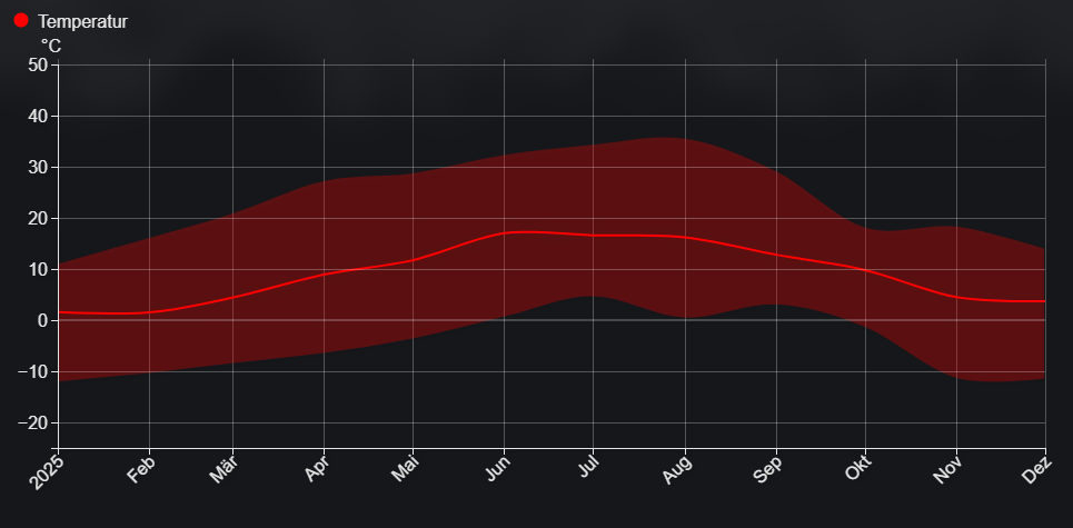 - d'Temperatur pro Mount (Duerchschnëtt, Maximum, Minimum)